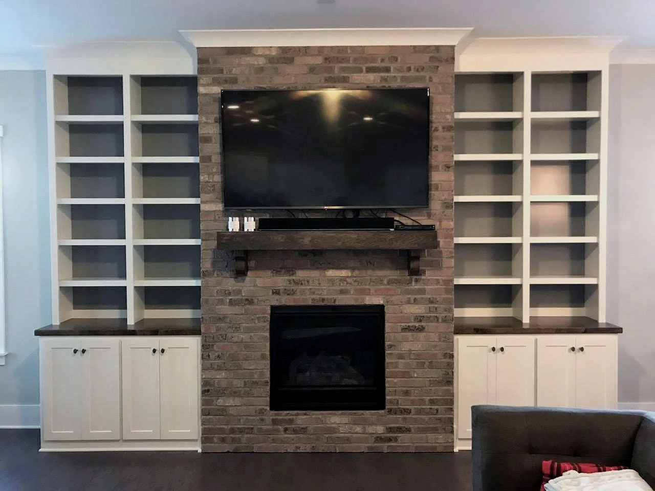 A Wall Of Built Ins Around Fireplace Custom Woodwork